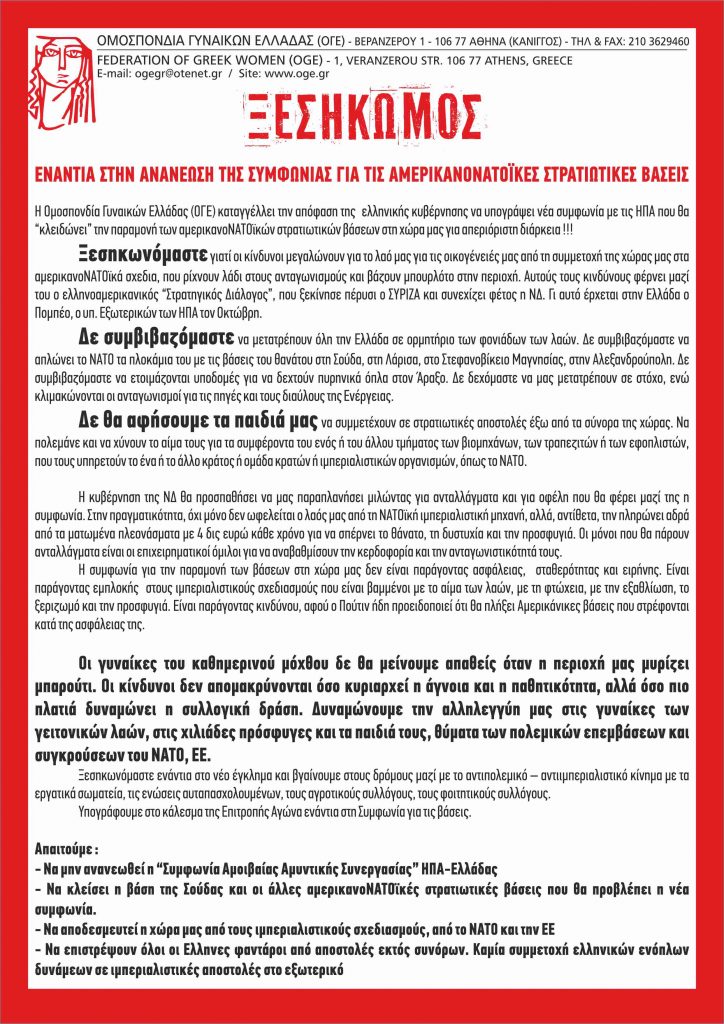 Ανακοίνωση ενάντια στη συμφωνία για τις ΑμερικανοΝΑΤΟικές βάσεις On 14 Οκτωβρίου 201914 Οκτωβρίου 2019