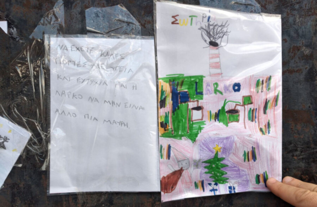 τις ευχετήριες κάρτες από τα παιδιά της περιοχής για τους εργαζόμενους,