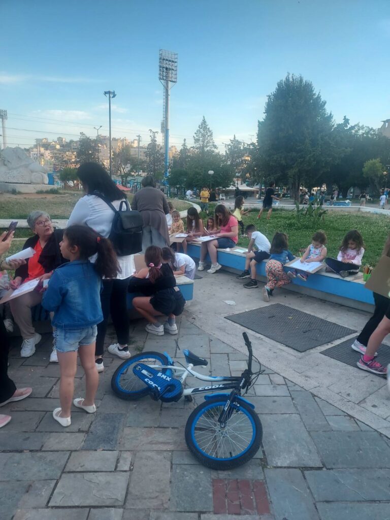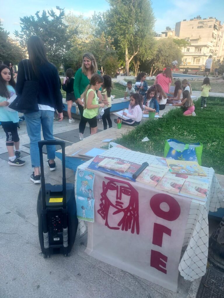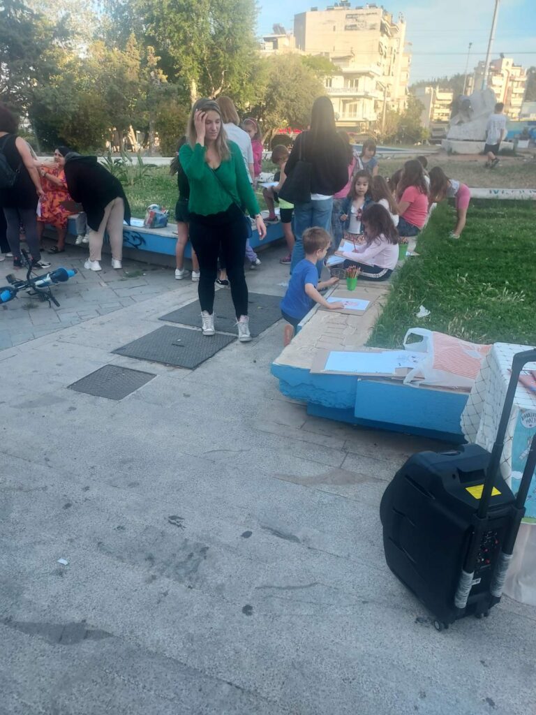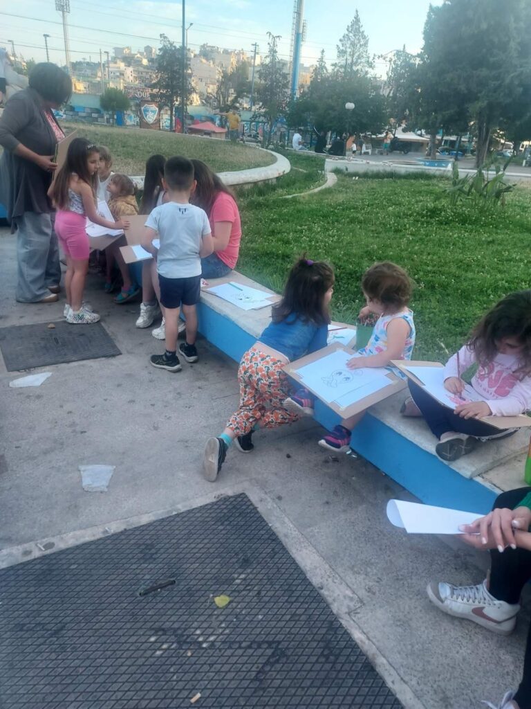 Ο Σύλλογος Γυναικών Νίκαιας σχεδόν κάθε Κυριακή όλο το προηγούμενο διάστημα έκανε Κυριακάτικη απασχόληση παιδιών με αφήγηση βιβλίων, ζωγραφική και κατασκευές. Αποφασίσαμε να απλώσουμε αυτή τη δράση στις πλατείες της περιοχής μας ώστε να γίνει πιο οικεία σε ευρύτερο κύκλο γυναικών και παιδιών, συνδυάζοντας τις διεκδικητικές δράσεις.