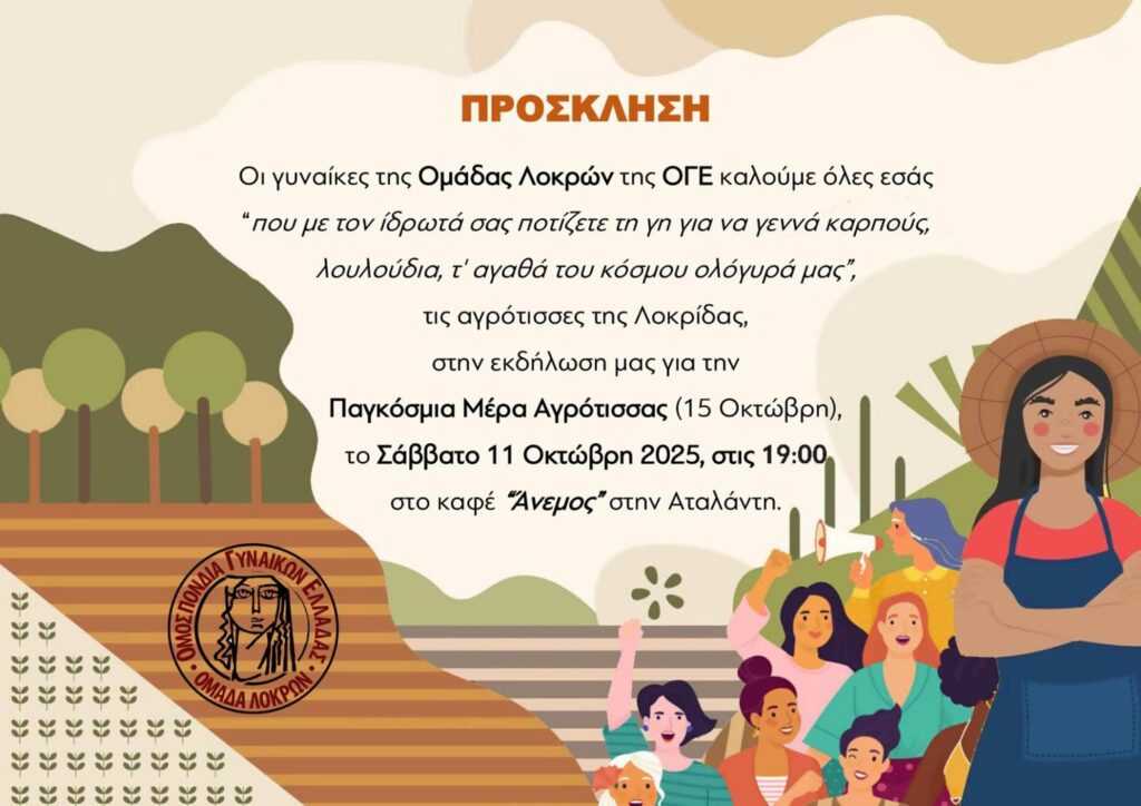 Να τιμήσουμε την Παγκόσμια Μέρα της Αγρότισσας με την απόφαση οργάνωσης και της ενεργής συμμετοχής μας στον αγροτικό σύλλογο της περιοχής μας, στην Ομάδα Λοκρών γυναικών της ΟΓΕ.
